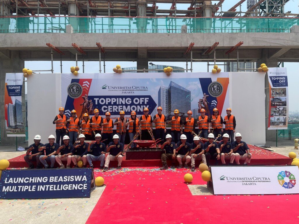 Pembangunan Gedung Kampus Universitas Ciputra Jakarta (UCJ) telah mencapai momen penting. Proses pembangunan ditandai dengan seremoni topping off yang berlangsung pada tanggal 15 Oktober 2025, menandakan penyelesaian struktur utama gedung tersebut.